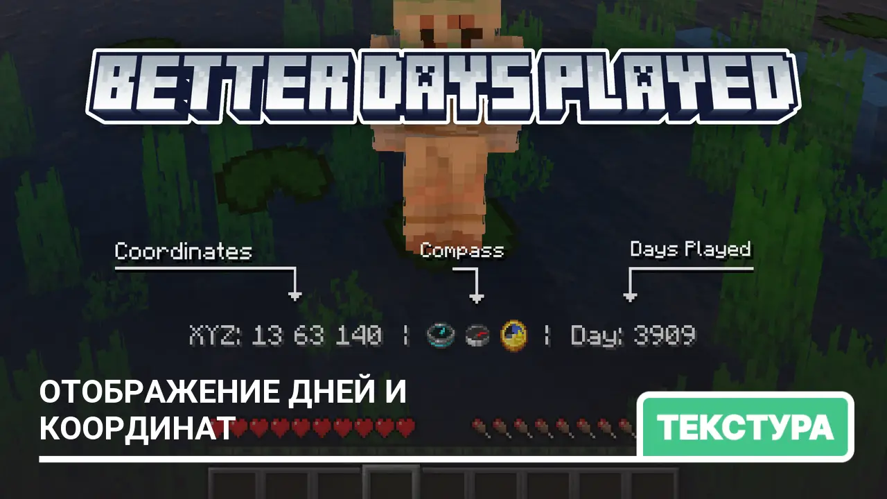 Текстур пак Better Days Played добавляет в ваш мир Minecraft удобный счетчик дней, позволяющий отслеживать время, проведенное в игре…