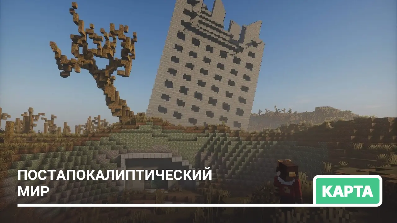 На этой карте вы исследуете постапокалиптический мир с различными локациями и структурами, созданными в классическом ванильном мире для выживания…