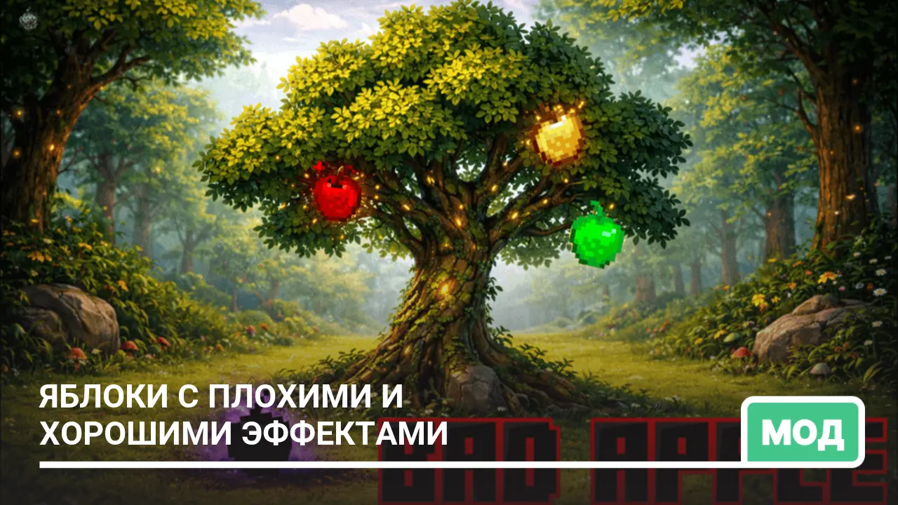 Мод добавляет различные варианты яблок с хорошими и плохими эффектами, которые можно найти или создать…