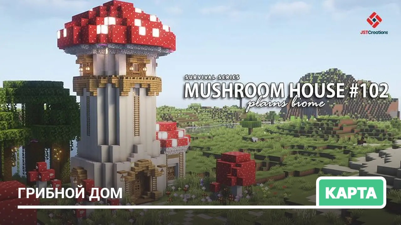 На этой карте вас ждёт грибной дом, полностью готовый для выживания, с построенным интерьером и экстерьером, полезными предметами внутри и спавном внутри здания…