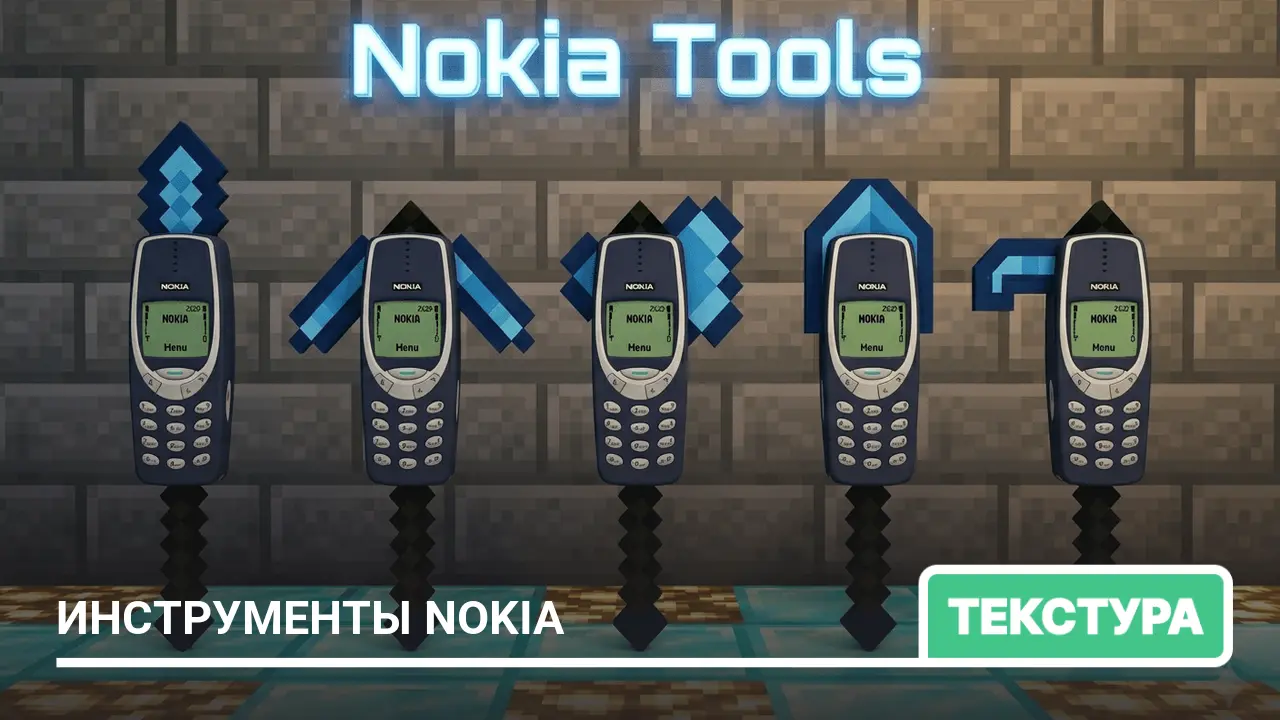 Эти текстуры заменяют все незеритовые инструменты на дизайн легендарного телефона Nokia 3310, добавляя в игру юмористический и мощный визуальный стиль…