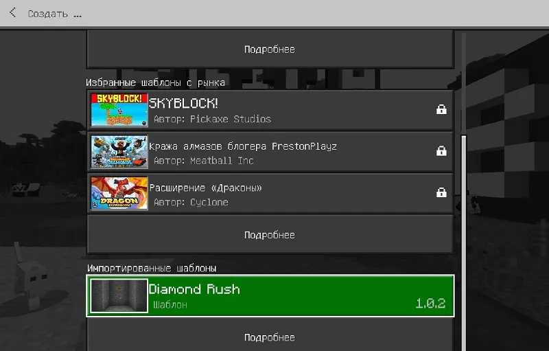 - Proceed to create a new world and in the template window, find the imported world template. Tap on it to create a world with it.
