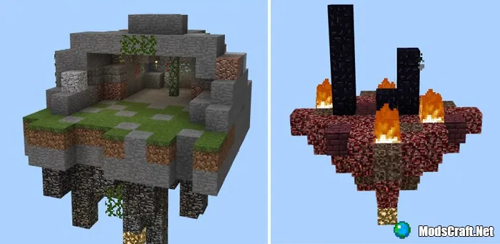 The Mega Skyblock map is a bit different from the usual SkyBlock in that you have to survive on an island and explore fourteen other different islands to complete the map. Each island symbolizes a certain biome or dimension where you will find new resources for survival.