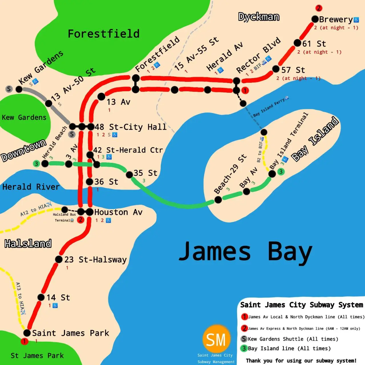 - Telegram channel of the subway operator SM (Saint James City Subway Management): https://t.me/Saint_James_city_subway
