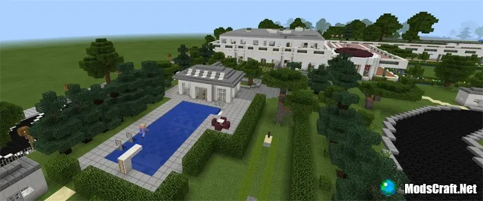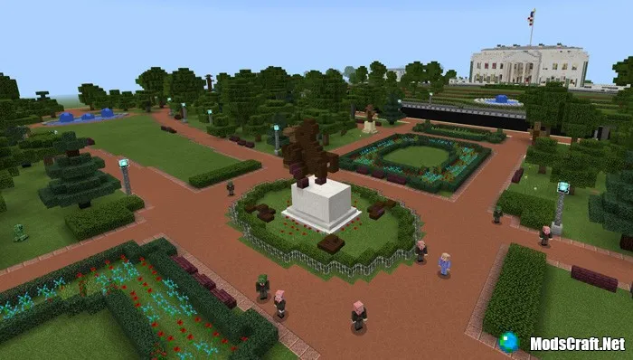 On the territory of the map The White House, the legendary White House has been recreated, which is the official residence and workplace for all US presidents since the 1800s, when John Adams (2nd US president) became the first to live there. This map shows a huge residence and many other structures and parks.