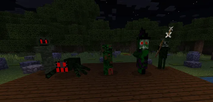 Zombies, spiders, creepers, witches and skeletons have been modified especially for this Minecraft Bedrock map.