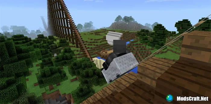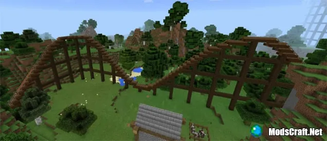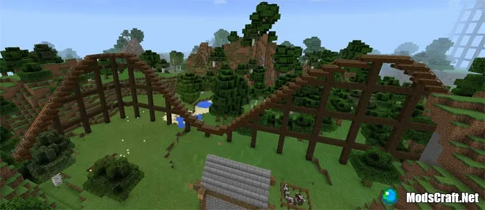 On the map Wooden Cobra you will find large slides that were built in an ordinary forest biome. The slides pass through various beautiful places, including mines and farms. If you love landscapes and roller coasters in Minecraft Pocket Edition, then you should definitely try a ride!