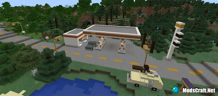 On the roads sometimes you will meet cars and trucks. Mod Mine-Car MCPE can help you with this!