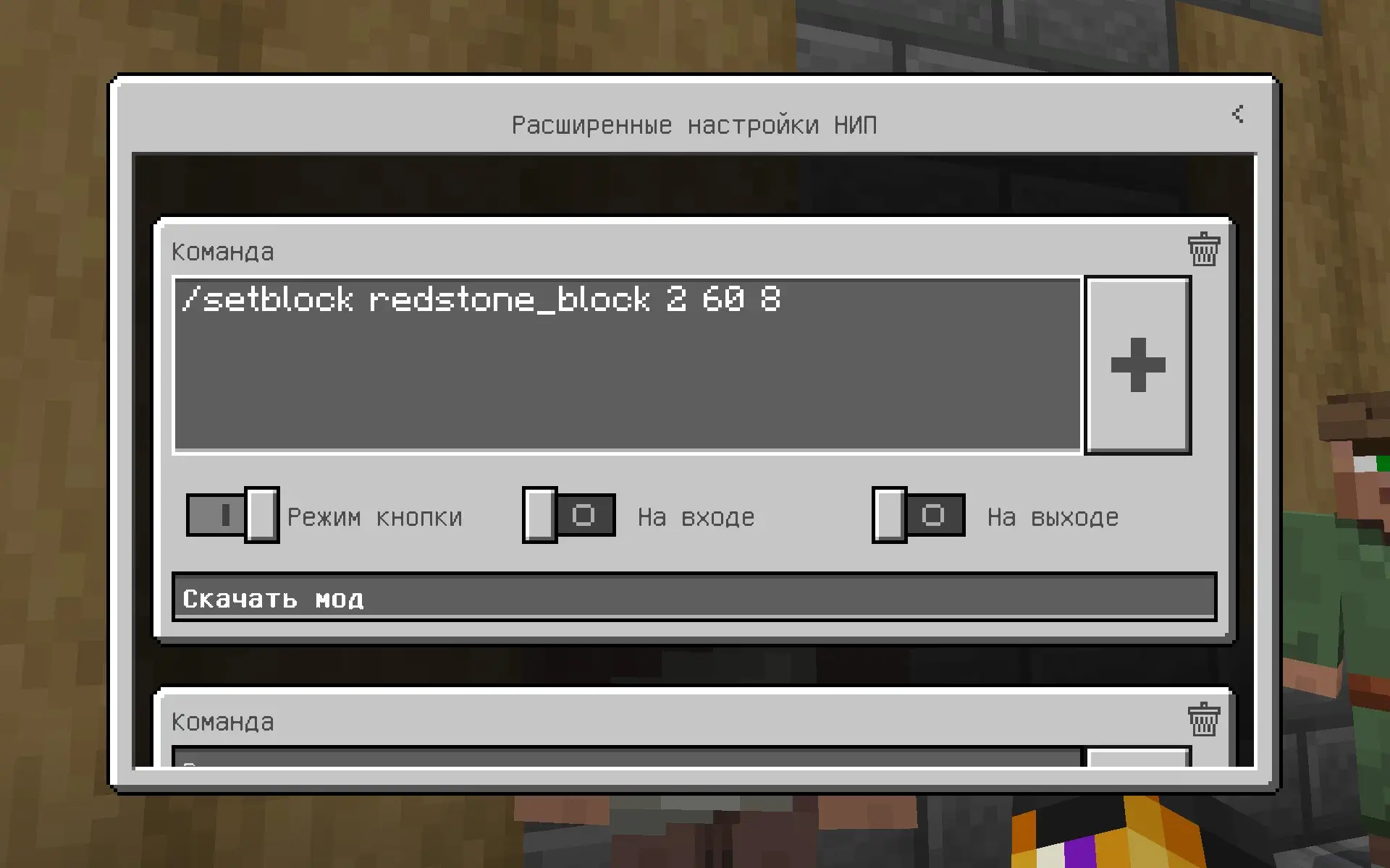 The addon adds NPCs in the form of villagers to Minecraft. You can easily give any name to each NPC, set up dialogues, and use built-in buttons to run different commands directly from the dialogue. This is especially useful for map makers.