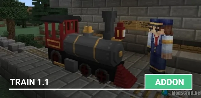 Mod Train will add to Minecraft Pocket Edition a fully functional train that will ride on rails. You can use the train to move around the game world on your own MCPE, but the train also allows you to transport resources in a special chest. Train detailing looks very cool and I hope that in the future the developer will add more features!