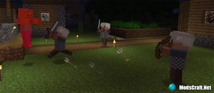 Mod Village Guards will add to Minecraft new villagers who will protect villages from monsters. Train ordinary residents to make them your guardians and give them a sword or bow to activate a certain class.