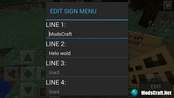 Have you ever had cases when you wrote something on a sign, came out, but made a mistake in the text? At the same time, do you not want to break the plate and re-write the entire text? With mod Edit Sign for Minecraft Pocket Edition you will be able to edit the text on the plate without breaking it.