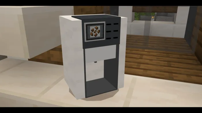 First, place the cocoa beans in the coffee maker. Then you need to create a mug from the quartz mineral. It remains only to right-click on the coffee maker to fill the mug. Enjoy your coffee!