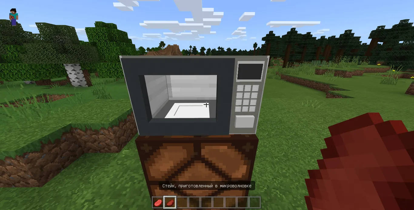 With the help of a music player, you can play music directly in Minecraft! Just place the speakers and player, and then right-click on Windows 10 or a special button on the screen to turn it on.