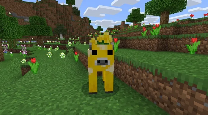Cowflower can be found in flower biomes. You can't interact with this animal (yet), but such a cow still looks very cute!