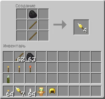 Crafting is the same as a regular torch, but you will need an extra stick in the middle slot for crafting. The brightness of the throwing torch corresponds to an ordinary torch (14).