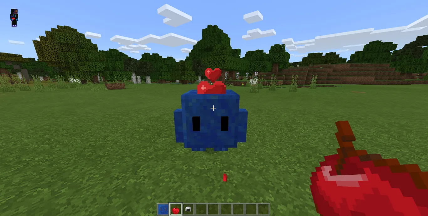 Tamed by wheat seeds. His gadget is activated by an oak sapling, which will grow on his head. After 1 minute, apples will appear on the Mud Blockkling, which you can collect with scissors (there is a chance to collect a golden apple).