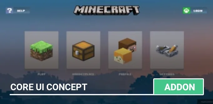 Core UI Concept Pack adds a new conceptual user interface to the game, shown at dotJS 2018. The main purpose of this resource pack is to show players what the new Minecraft Bedrock user interface might look like. This resource pack will be updated in the future to show as many changes and concepts as possible.