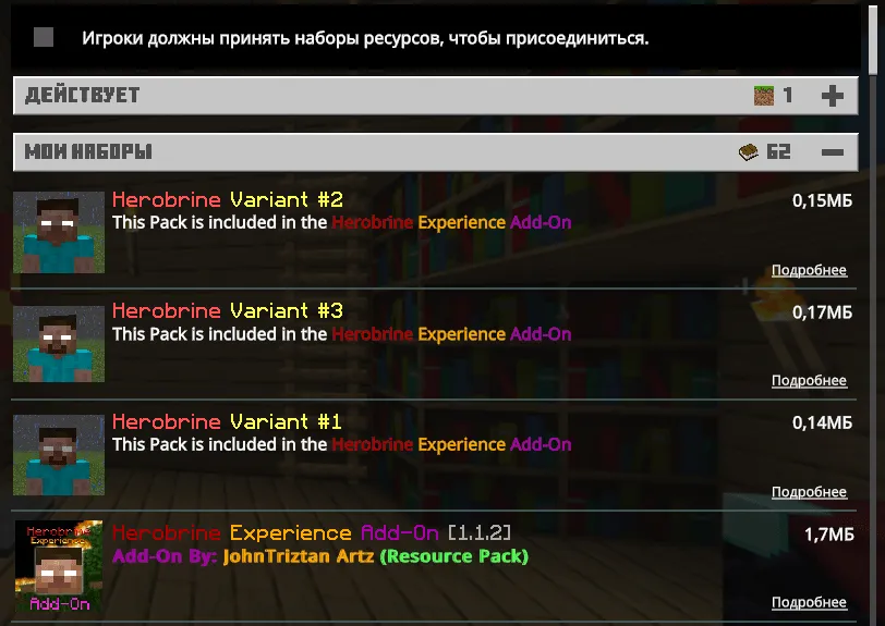 If you want cursed animals to appear in your world, select the Herobrine Experience mod in the behavior pack and click on the gear icon and move the slider to the left.