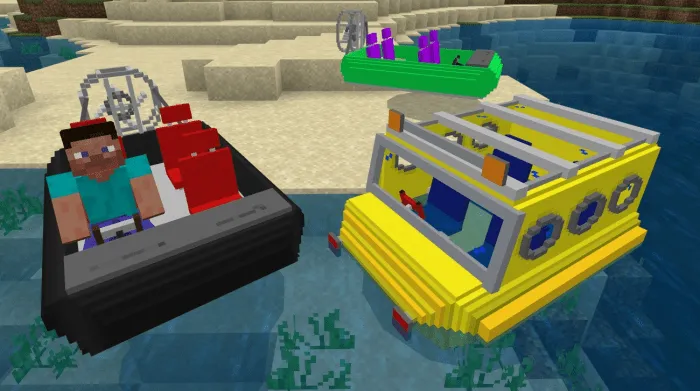 Speed boats! Jet skis and boats for all your summer cruises. No more rowing with your hands on the endless oceans of Minecraft. No more torment in an ordinary boat for a glorious battle for an Underwater Fortress.