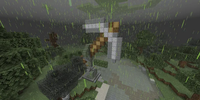 The colors of the biomes have been changed to give a gray color to the sky and fog, the water has also changed as a result of the released radiation.
