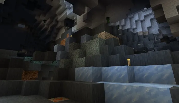 You can immediately notice that the updated caves have become much larger and they are full of interesting surprises that await you on your exciting journey. The new caves are also similar to the caves shown in the upcoming version 1.17.