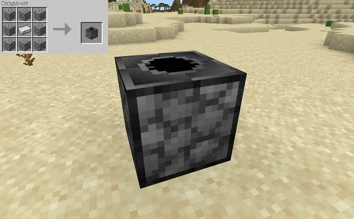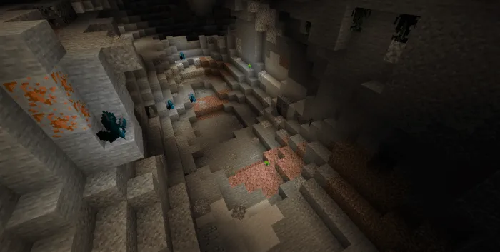 You can find these caves in the dungeons of desert biomes. There is a new kind of stone in these caves — sandstone. Also, in these caves, both vanilla ores and new ones will be generated, as well as new types of stones, such as sandy coal ore and sandesite!