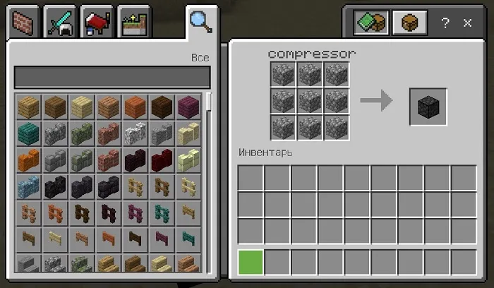 The compressor can compress the cobblestone into one block, as well as turn granite, diorite and andesite into a regular cobblestone.