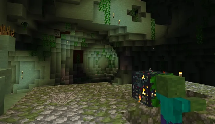 Jungle caves in Minecraft PE are generated in the dungeons of jungle biomes, but keep in mind that these are the slowest caves in this mod due to the more complex generator. Many plants appear in these caves.