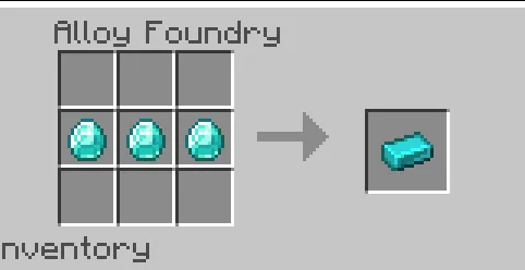 Foundry equipment can be used to create alloys that: create new blocks, armor and drill! Crafting recipes can be found in Foundry Equipment and workbench. Below is a recipe for crafting the Foundry equipment itself and a recipe for crafting a diamond ingot in it.