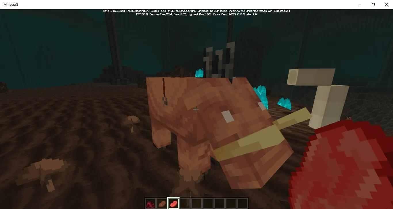 Once he is tamed, you can equip Hoglin with a saddle to control his movements like a horse: