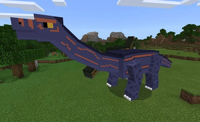 Apatosaurs can be found in lowland biomes in small flocks. Currently, they are among the strongest herbivores in mod, as they can simply trample small mobs and can destroy blocks weaker than stone by passing through them.