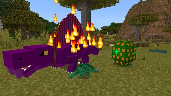 Stegosaurs can be found in lowland biomes and they live in groups. Don't attack him because he can kill most mobs in one hit.