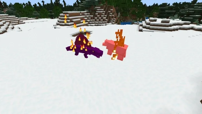 In cold biomes, he goes into heat mode, which makes him immune to fire and he can set fire to anything that attacks!