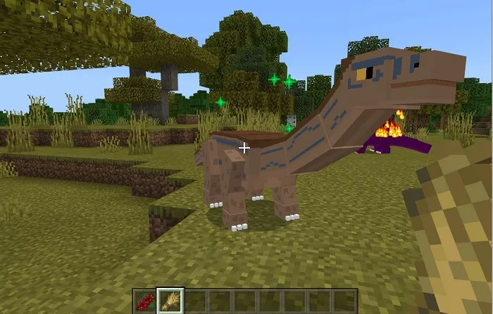 After taming, you will be able to ride a utahraptor that can jump higher than a horse, as well as attack other mobs.