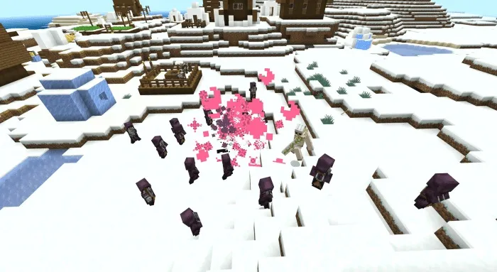 Together with this mod, the Illusion will appear in MCPE. It belongs to the type of Illagers and appears in small camps in the biome of the ice plains. In addition, he has a lot of health, which makes him a mini-boss.