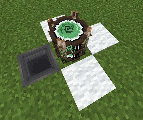 This is another important block for automation, which Golems go to when returning home. As you can see, there are white carpets on the sides of the station, funnels are placed under these carpets.