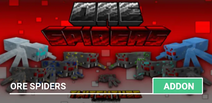 9 new ore spiders from the Ore Spiders mod will diversify your gameplay and add more fun and features to your world Minecraft PE!