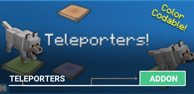 You need to enable the Holiday Maker Features experiments for this add-on to work. After creating a teleport, place it in the world and use a dye to assign it a color. Once you set the color, you can move between teleports of the same color and back! Teleports can move players, mobs, and items. They can be reprogrammed at any time by simply using a dye of a different color. There are 16 possible colors, so you have plenty of ways to travel!