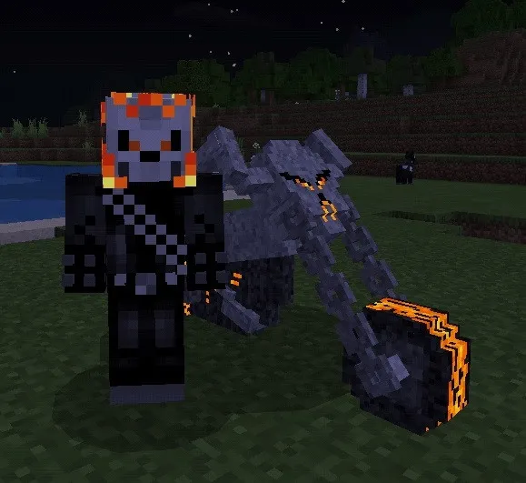 A collector of sinful souls. Ghost Rider arrived in Minecraft PE in a new mod. The author has wanted to create this add-on for a very long time and has been developing it for almost 8 months!
