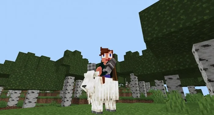 The mod Tameable Goats allows the player to tame a goat in Minecraft PE. What's so special about taming it? After taming, you will be able to ride her, milk her, store things in a special inventory, as well as receive her special attack during combat.