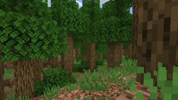 Firs, oaks, and birches are generated in one biome at once. This is an ideal place to extract the necessary resources in large quantities!