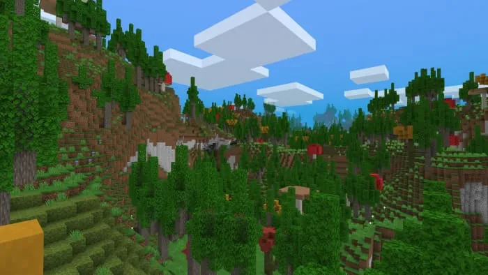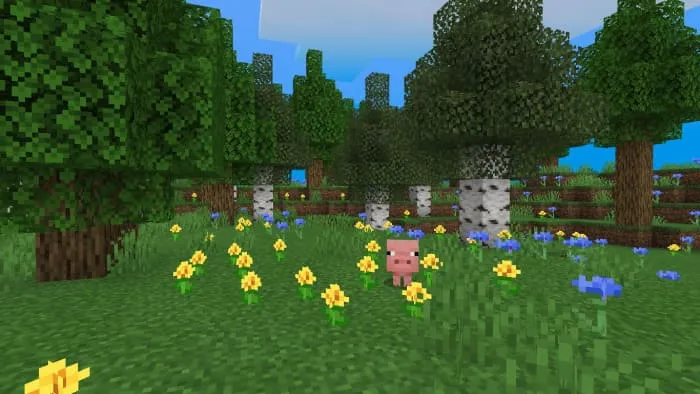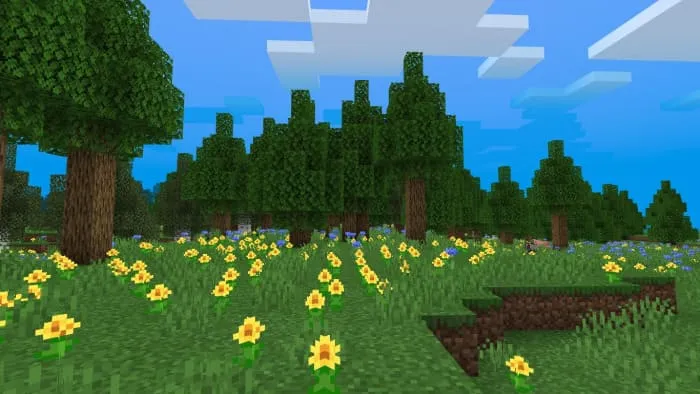 This is a fairly flat biome with new species of oak and birch trees, dandelions, cornflowers and grass. Monsters will not spawn in this biome, which makes it an ideal place to build. A meadow is a subshell that will be generated around a Meadow Forest without trees.