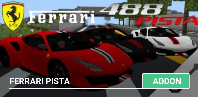 Mod Ferrari Pista adds a new racing car to Minecraft. This is the third version of Pista. Equipped with a 3.9 turbocharged V8 engine from the 488 Challenge and a design inspired by the 488 Challenge.