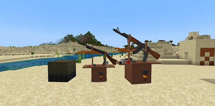 This mod will add assault rifles, machine guns, grenade launchers, pistols, revolvers to your world. Your gameplay will become more interesting because you can arrange large-scale battles with your friends. Now survival will become more interesting because fighting monsters will be much more interesting.