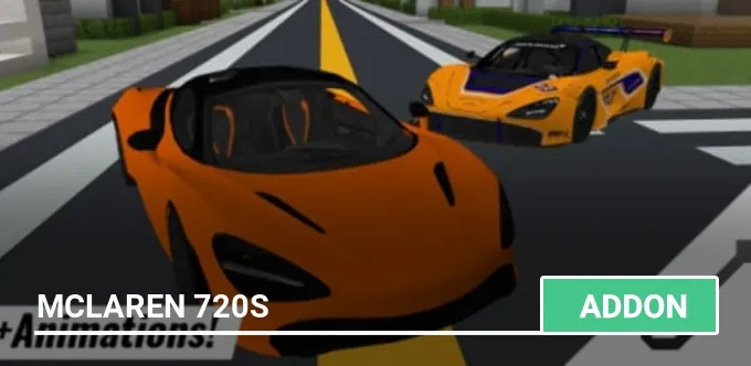 McLaren 720s mod adds a new racing car to Minecraft. The McLaren 720s has been added in 7 standard color options: the famous orange, as well as black, white, red, yellow, mint, light green and the LM variant.