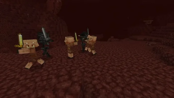 Piglins are constantly in search of gold, but if you wear gold armor, they will ignore you. Piglins guard their chest, which contains various jewels. If you try to steal from them, they will start hunting you.