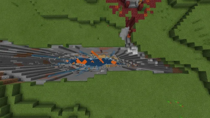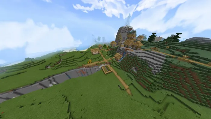 The village appears in the plain and mixes with the mountain biome, creating several random buildings on the mountain.