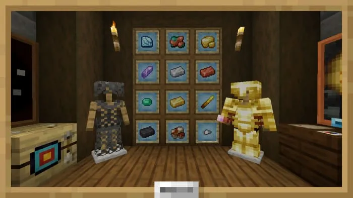 And items such as swords, shovels, picks, axes, hoes and armor now have different shapes depending on their material, which is also useful for colorblind people who cannot distinguish colors.