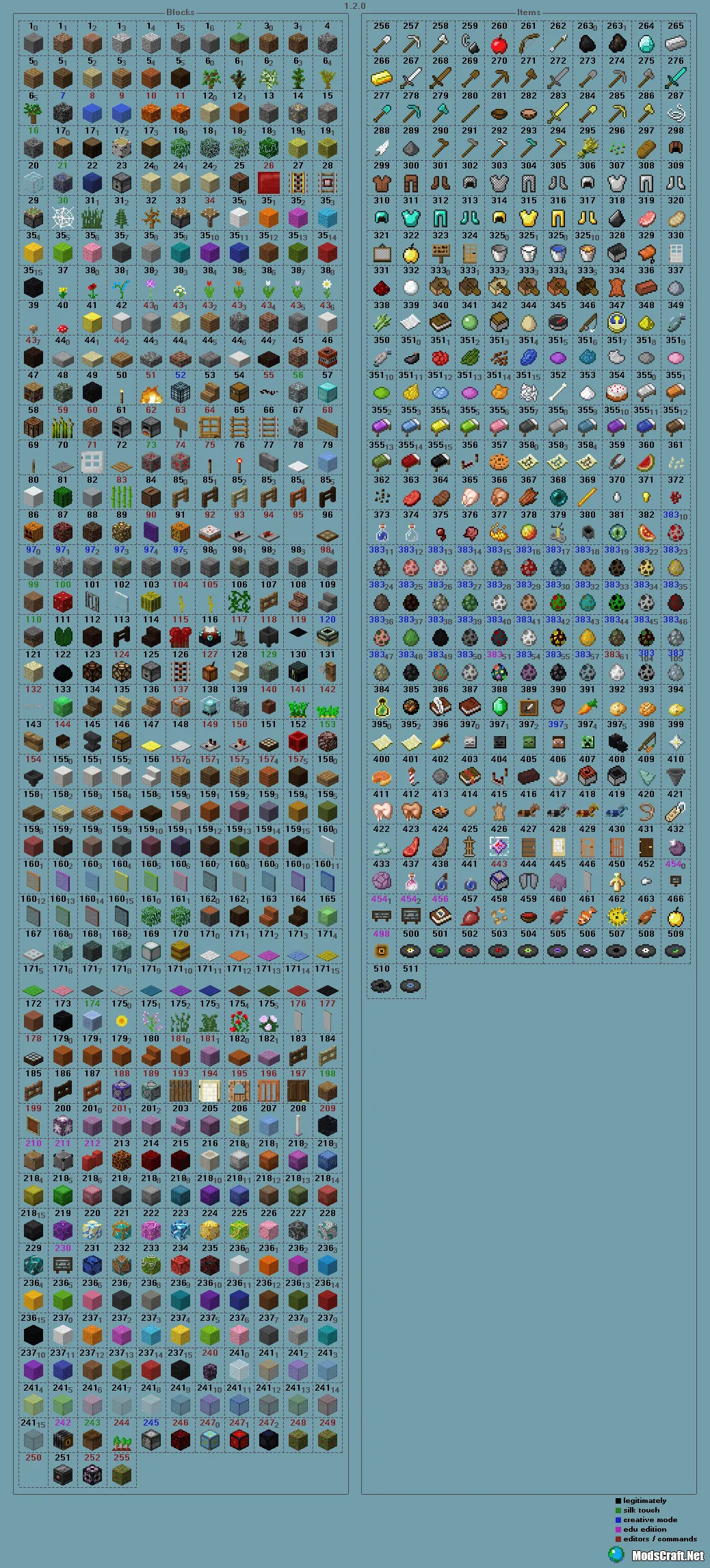 ModsCraft » Гайды » ID предметов и блоков в Minecraft PE 1.2/1.1/1.0